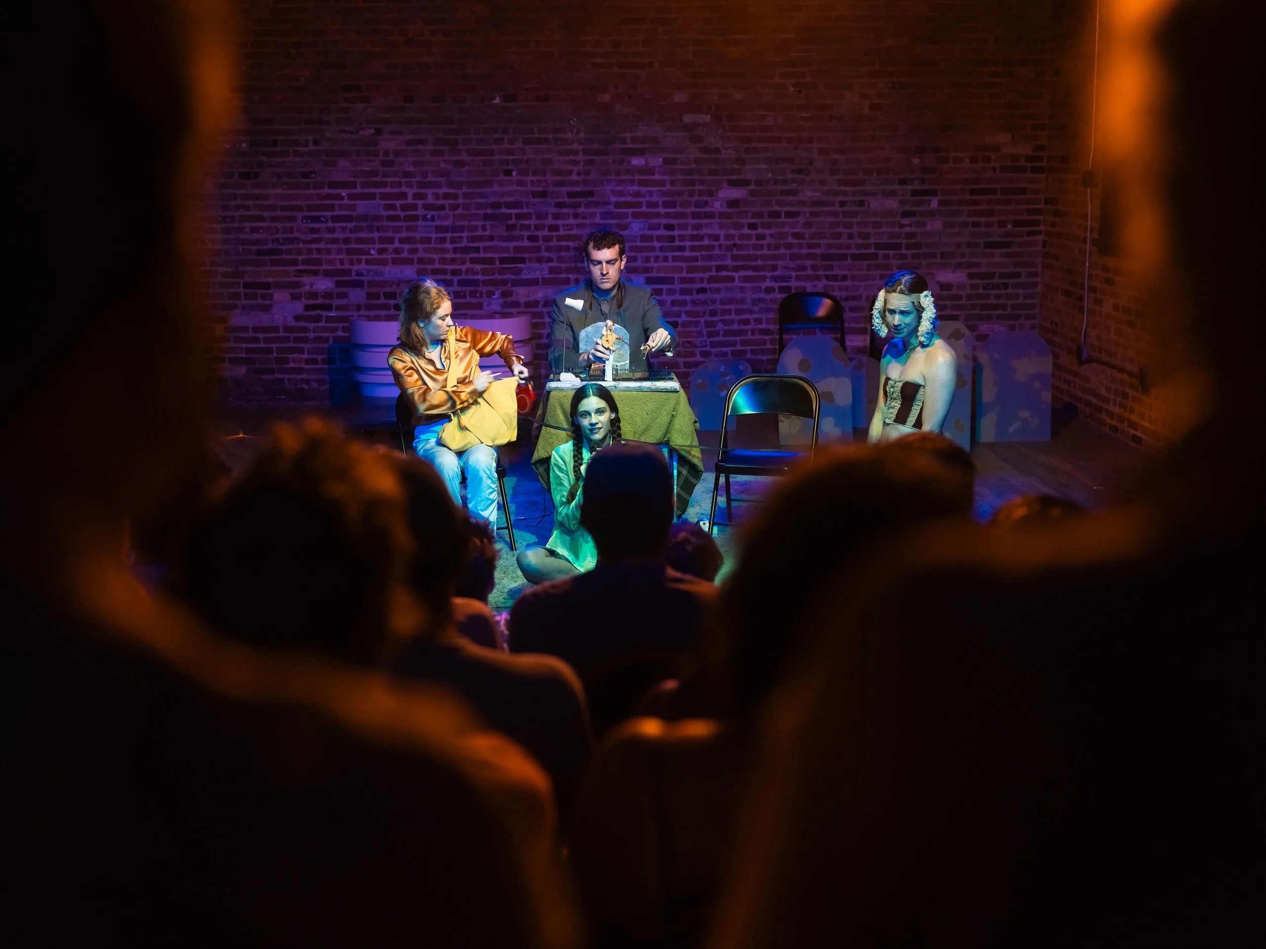 A couple days later, I was once again swiping through Instagram stories and saw Adult Film had posted some photos from what had turned out to be an entirely sold-out run of Other People’s Lives. The photos made me nostalgic for only two days prior, when, for an hour and forty-five minutes, in an unmarked warehouse on the edge of Bushwick, it felt like anything could happen—and everything that did happen was magic. The last slide of their story was a reshare from Katrin Nugent: a photo taken from the second floor of Unit J, looking down on the entire cast in the middle of the “stage.” The caption read, “Something very special happened here.” Indeed it did, and I was honored to have been a part of it, even if I was just a fly on the wall.